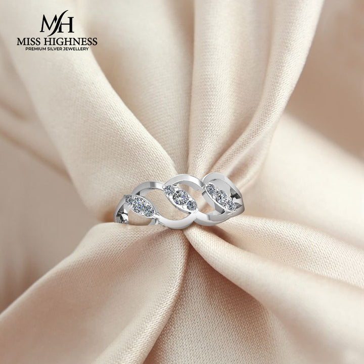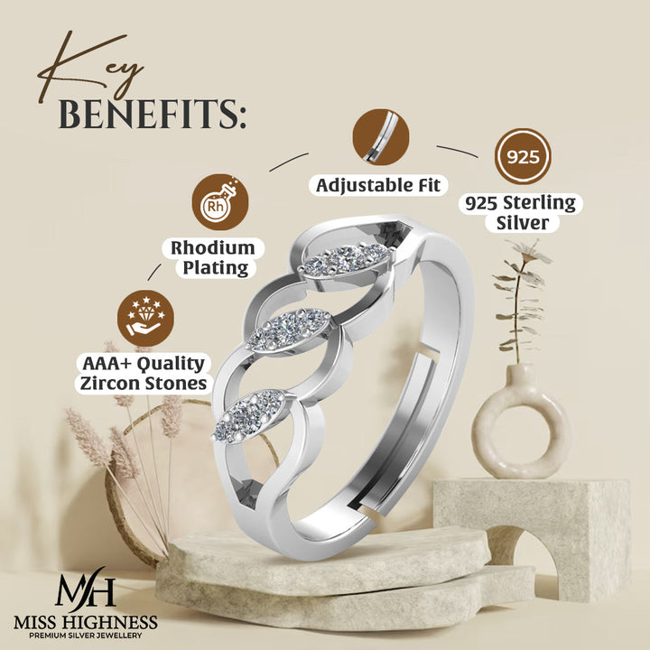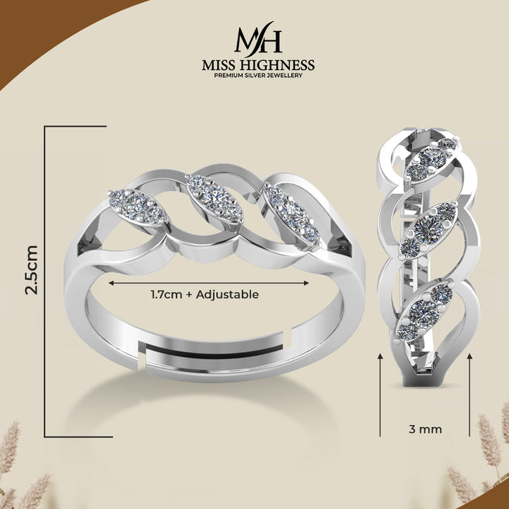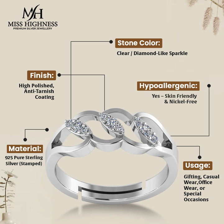 925 Crystal Sterling Silver designer Zircon Diamond Freesize Ring