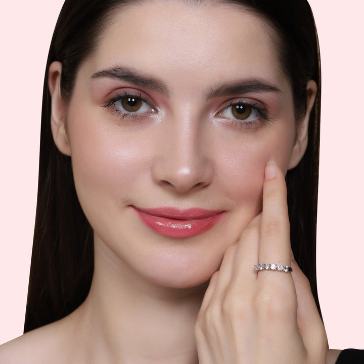 Crafted for the woman who loves timeless brilliance, the Serena Silver Eternity Band brings a classic yet bold aesthetic to life. With seven sparkling zircons aligned in perfect harmony, this ring captures the beauty of togetherness and balance — making it an ideal piece for both everyday glam and memorable moments.