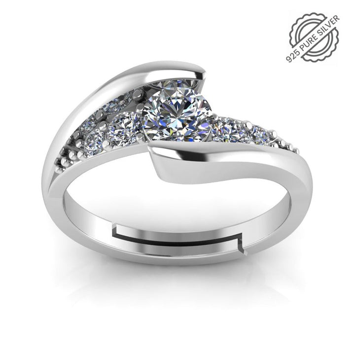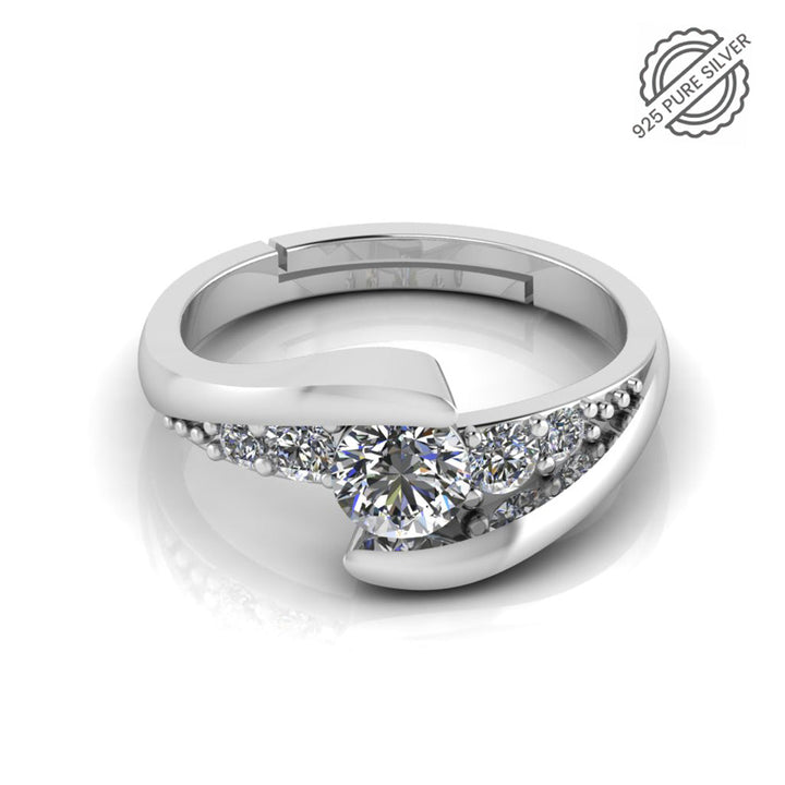 925 Crystal Sterling Silver Solitaire Diamond Statement Ring