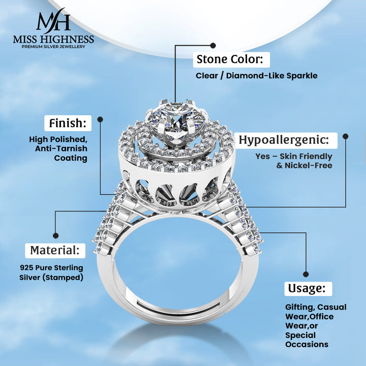 925 Pure Silver Pretty Cocktail Special Ring for Ladies