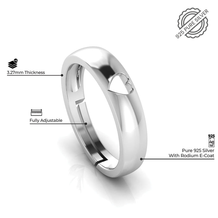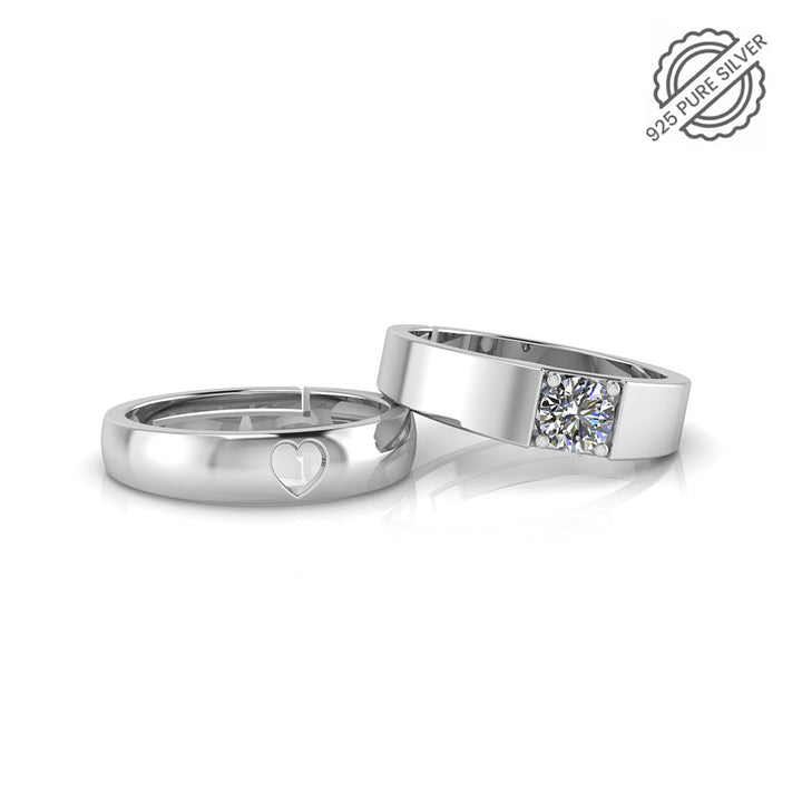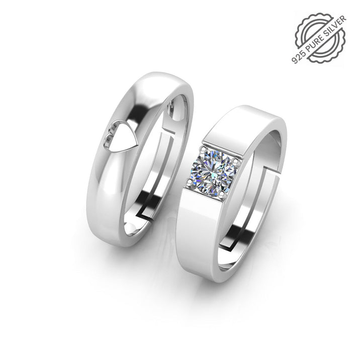 925 Pure Silver Solitaire Diamond Crystal heart Free Size Ring For Couple's