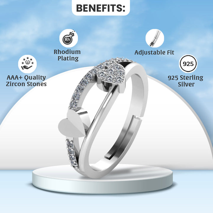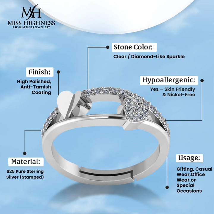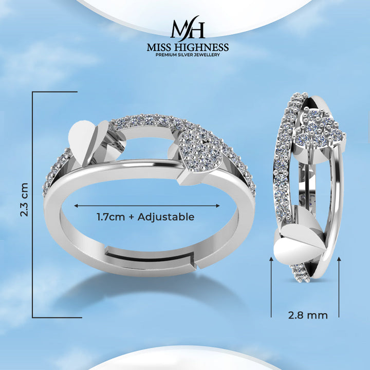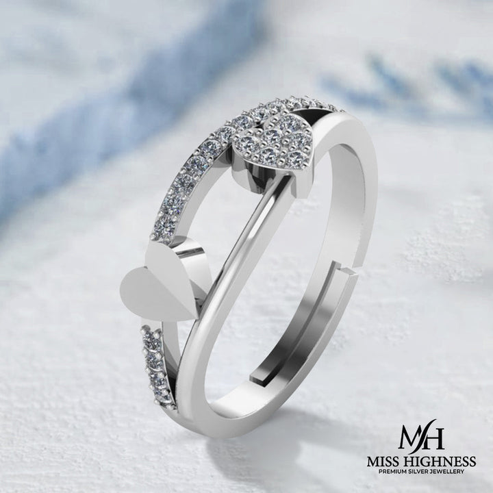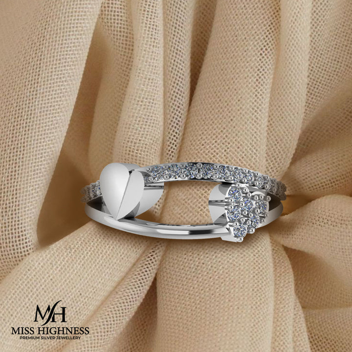 925 Pure Silver Zircon Heart Ring For Ladies