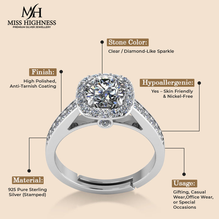 925 Pure Starling One Single Promise Silver Ring for Ladies