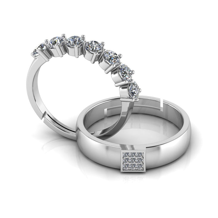925 Pure Starling Silver Diamond Studded Minimal and Classy Status Special Couple's Ring