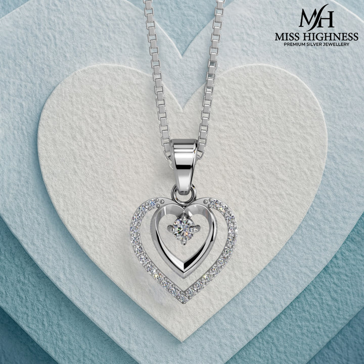 925 Pure Starling Silver Lovely Loyal Double Heart pendent with chain