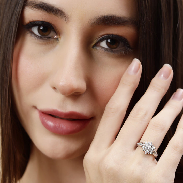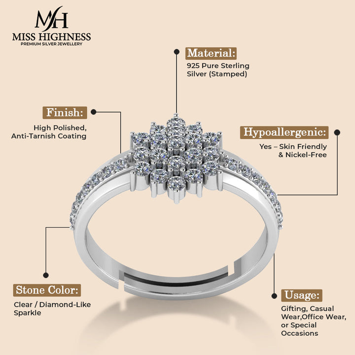 Sparkle and shine with this gorgeous 925 pure Starling silver posy cocktail ring! Adorned with a pretty posy, this cocktail ring will make even the toughest of ladies melt with its sheer elegance and beauty. It's an ideal accessory for adding a little bit of bling to your ensemble!