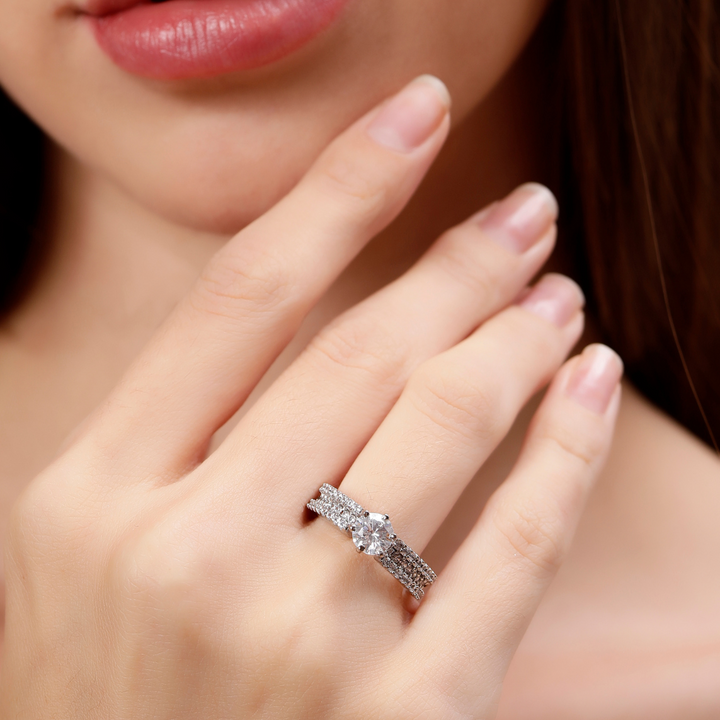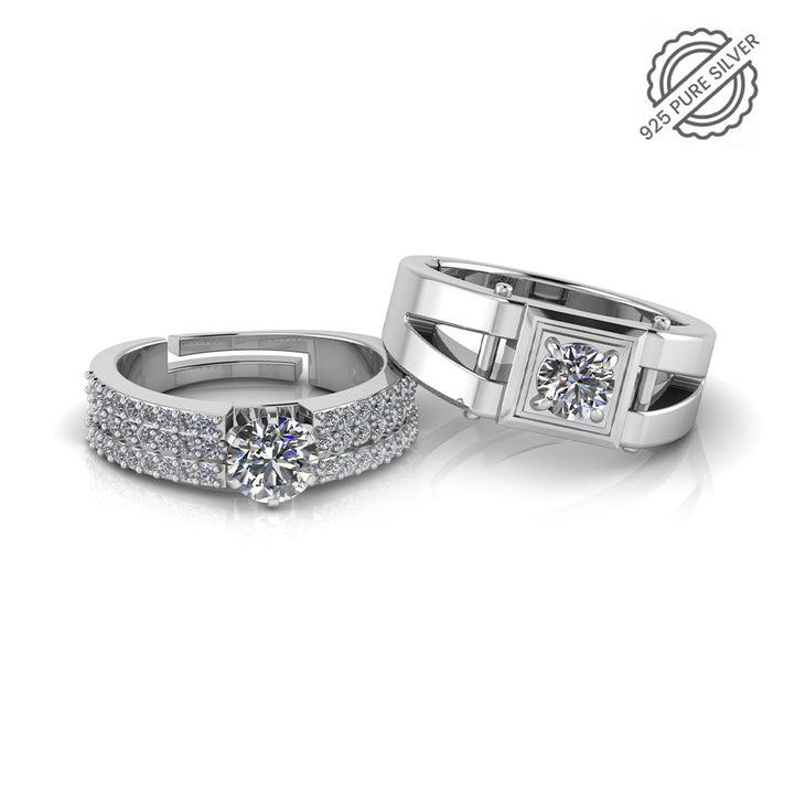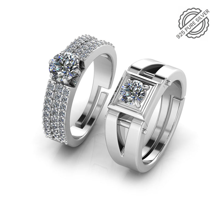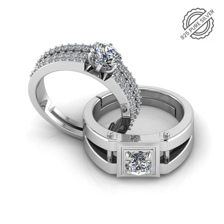 925 Pure Sterling Silver Triple Lair Solitaire and Stardom Special Couple's Ring