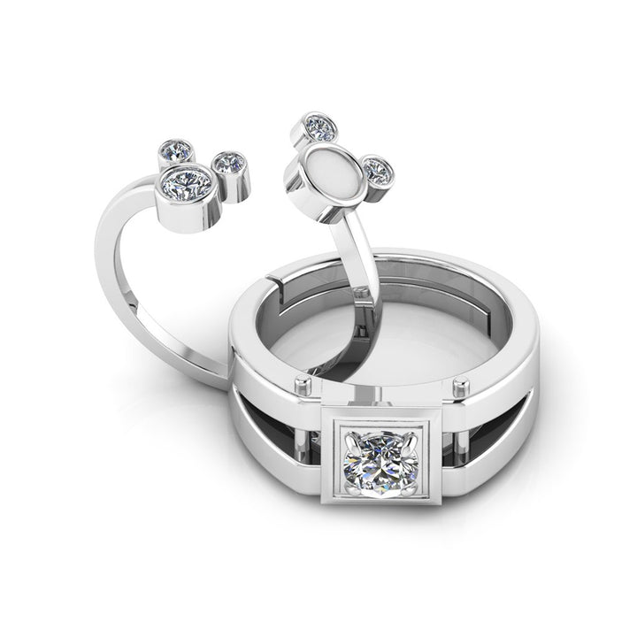 925 Pure Sterling Silver Cute Mickey Enamel and Stardom Mens Couple's Ring