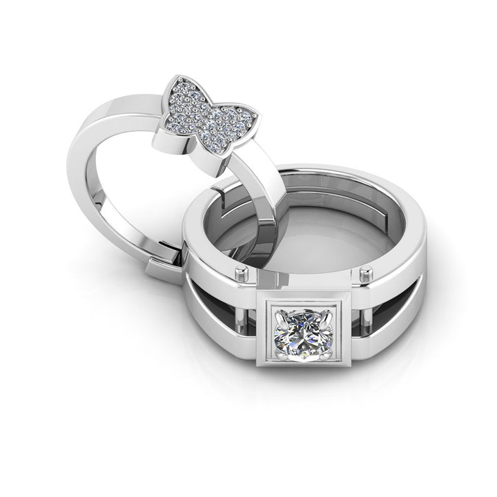 925 Pure Sterling Silver Diamond Studded Freesize Butterfly and Stardom Mens Couple's Ring