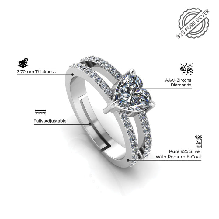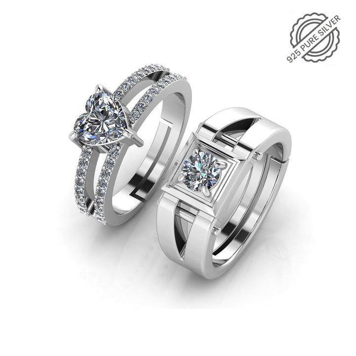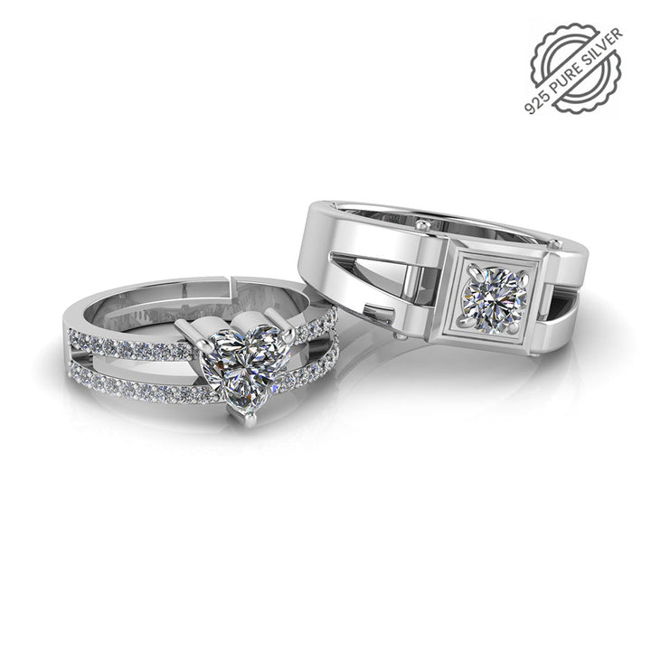 925 Pure Sterling Silver Heart Shape Royal and Stardom Mens Couple's Ring