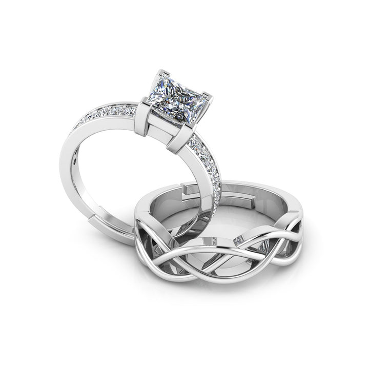 925 Pure Sterling Silver Princess Diamond Cut and Celtic Knot Couple's Ring