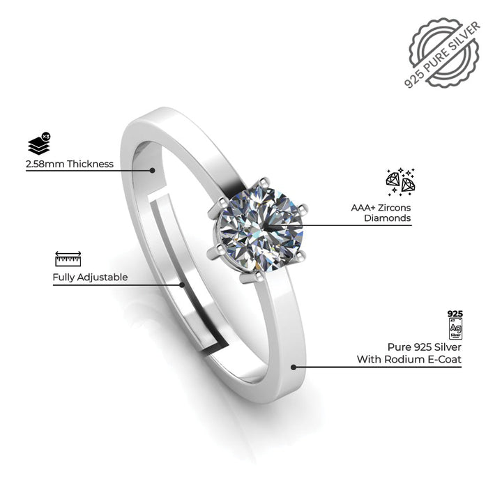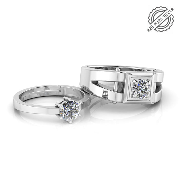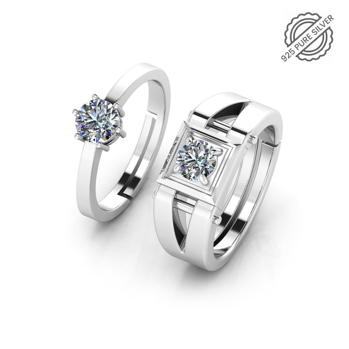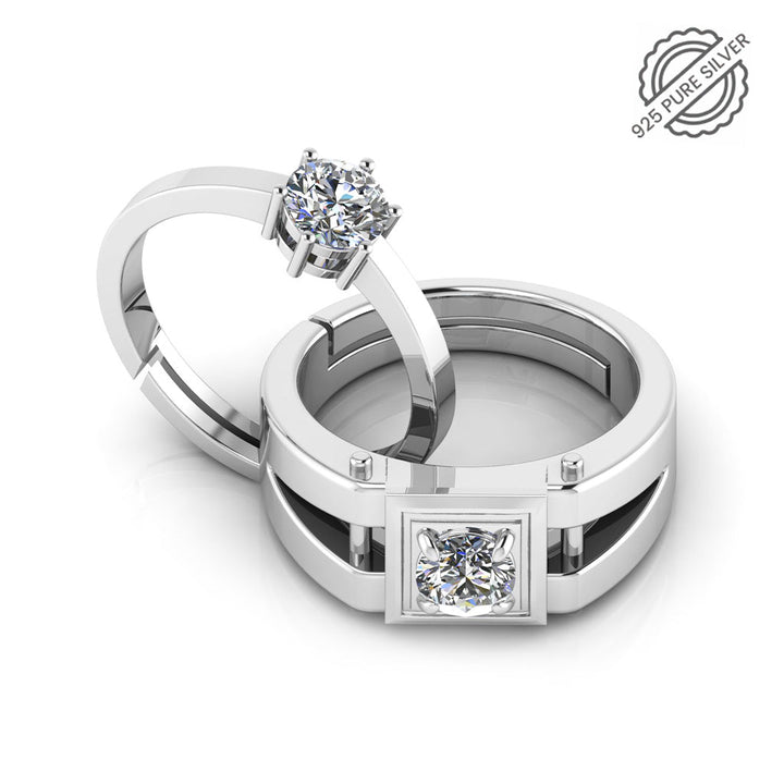 Show off your unique style and sparkling commitment with this 925 Pure Sterling Silver Solitaire Ring and Stardom Mens Couple's Ring. This meaningful set of rings radiates sophistication and class, but also lets everyone know you've got that special someone who's taken your breath away! No need to choose just one, you'll have both and feel like a star!