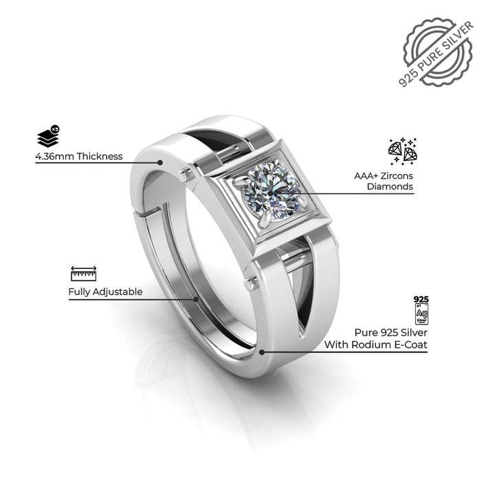 925 Pure Sterling Silver Solitaire and Stardom Mens Couple's Ring