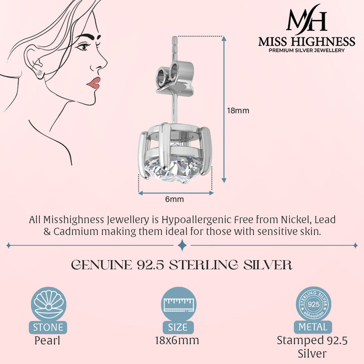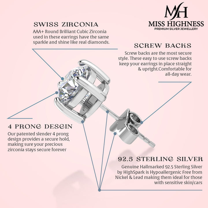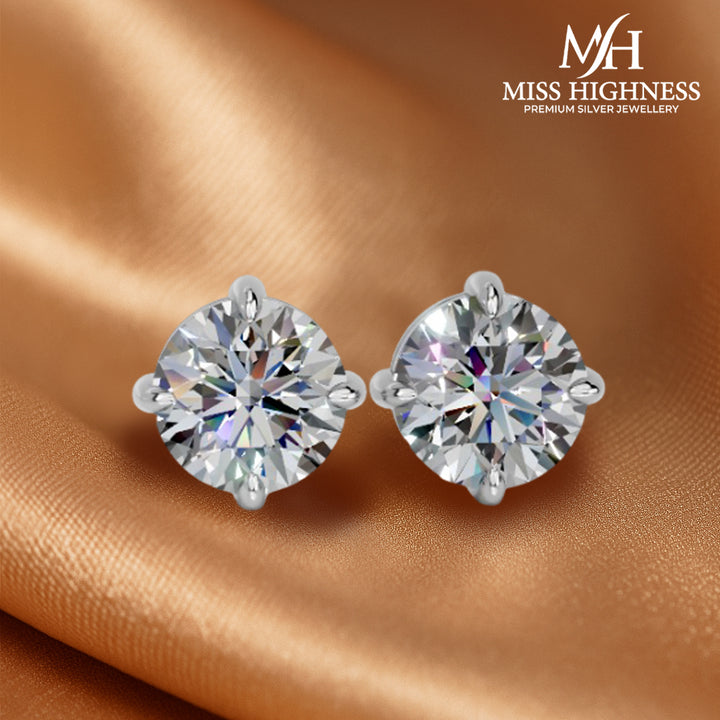 925 Sterling Silver Classic Diamond Stud Earrings for Women and Girls