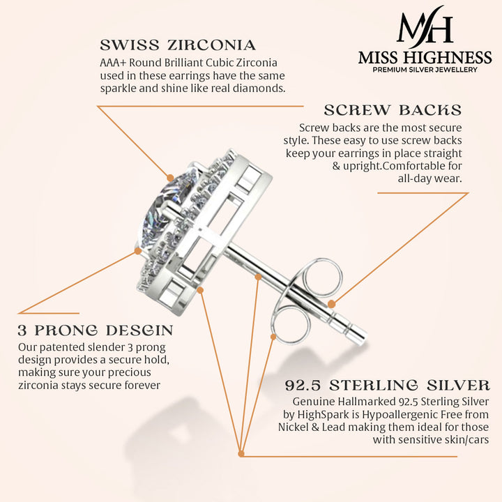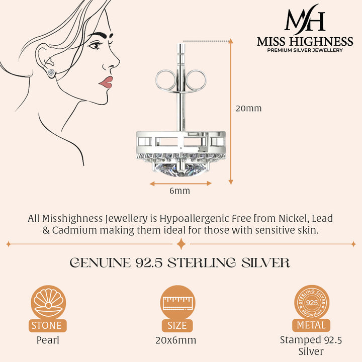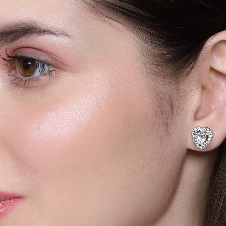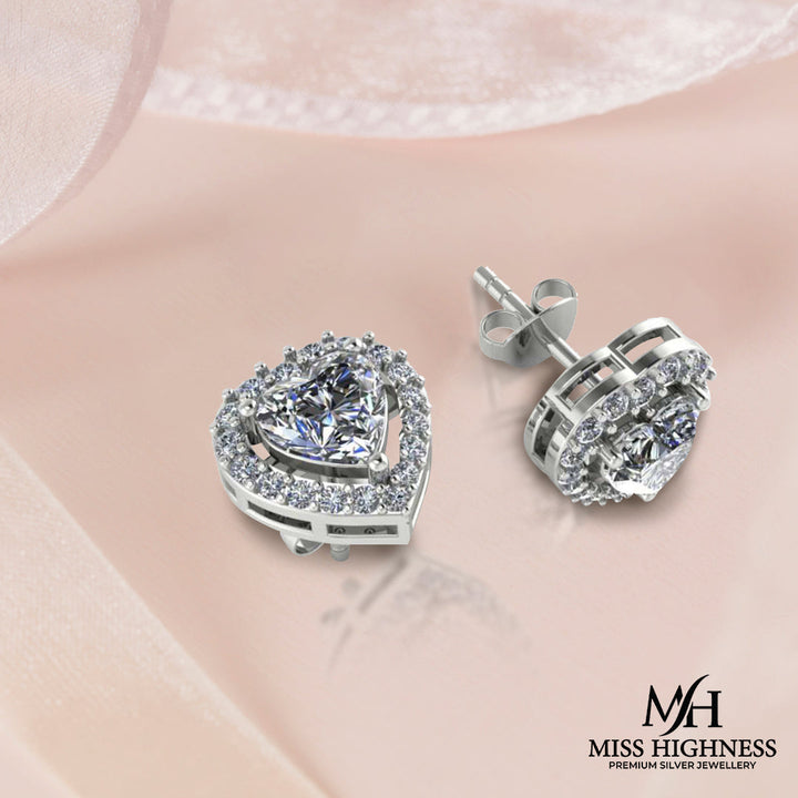 925 Sterling Silver Classic Zircon Heart Stud Earrings for Women and Girls