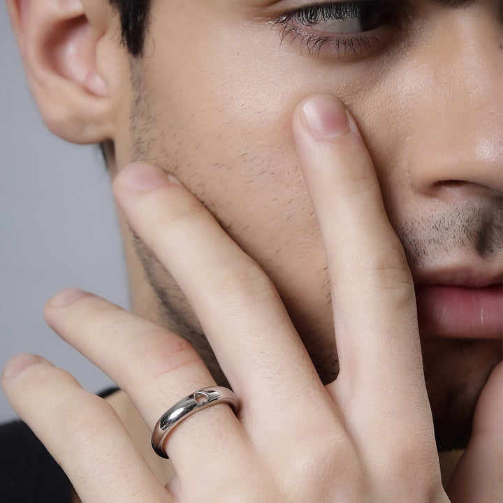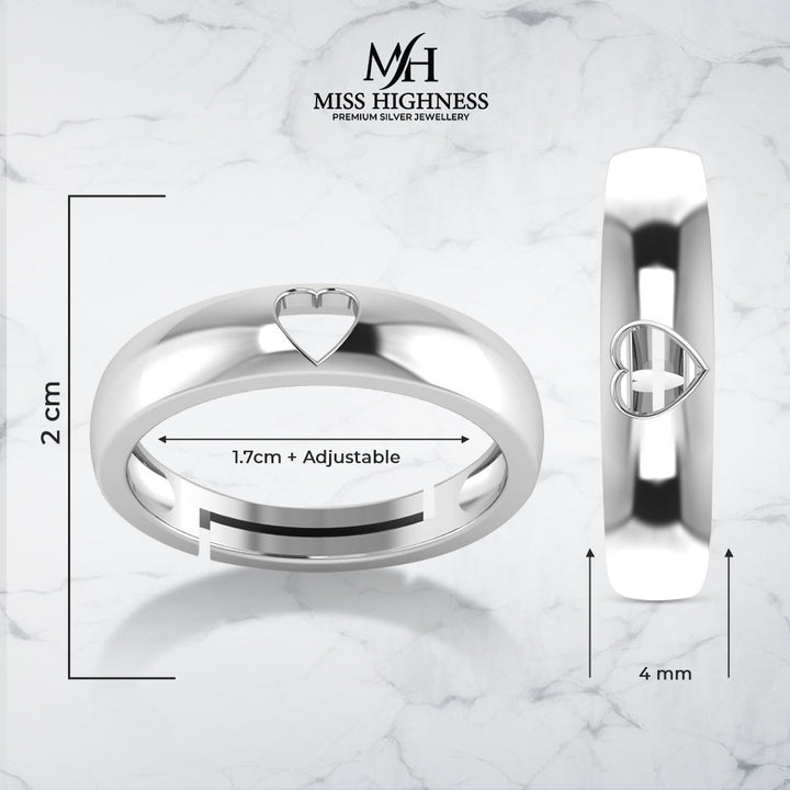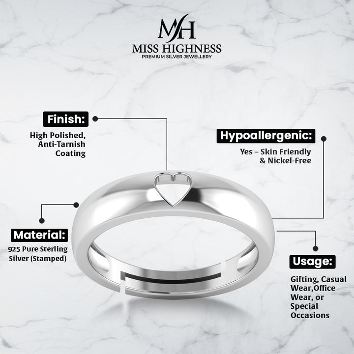 925 Sterling Silver Crystal heart Freesize Ring for Men