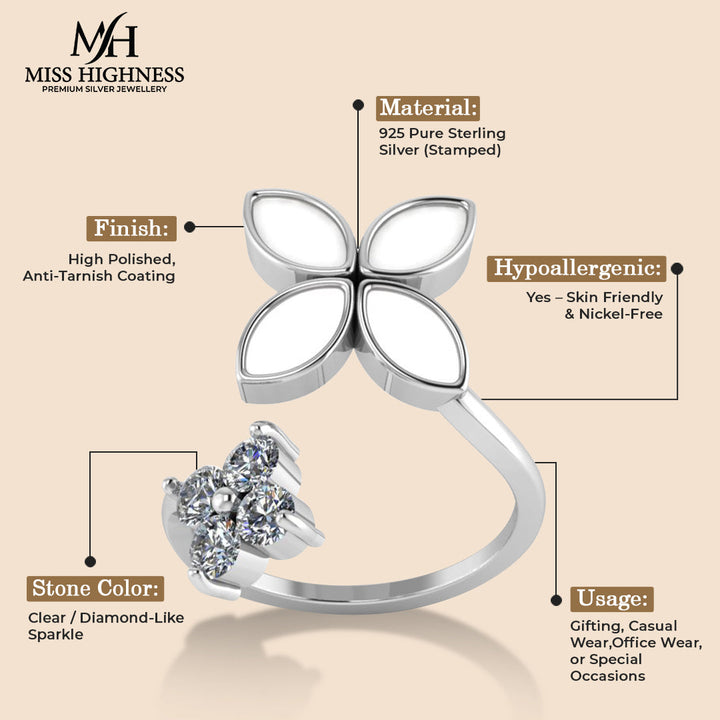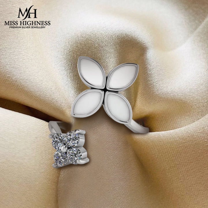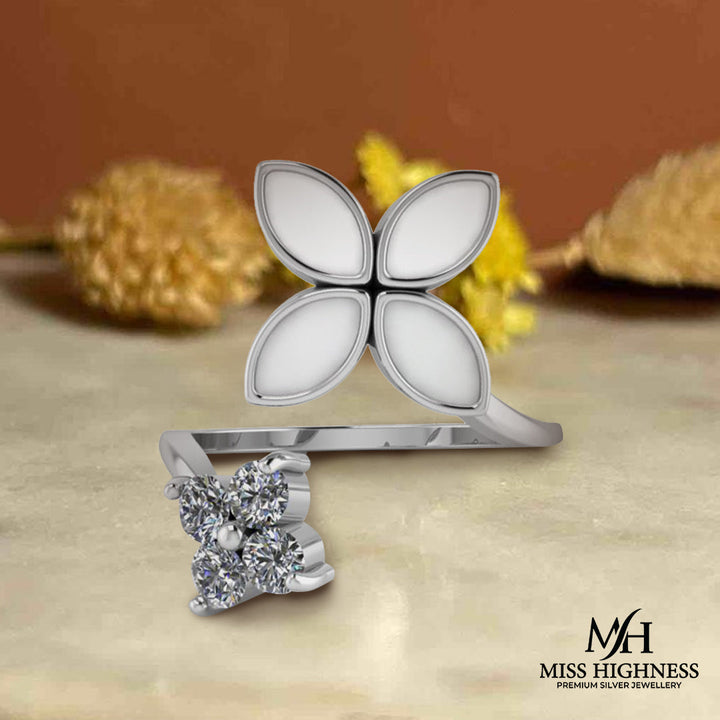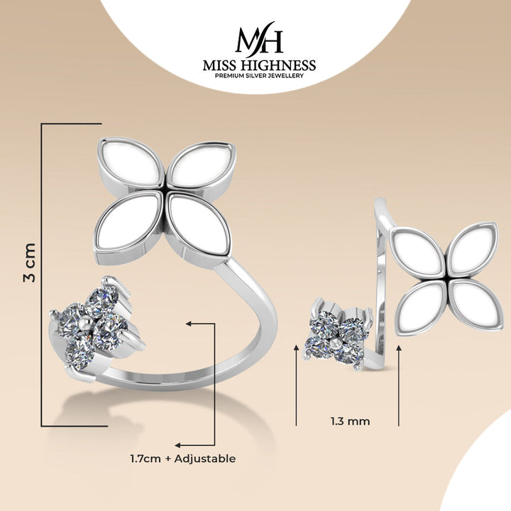 925 Sterling Silver Cubic Zircon Enamel Ring Freesize