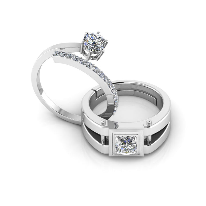 925 Sterling Silver Cubic Zircon Solitaire and Stardom Special Couple's Ring