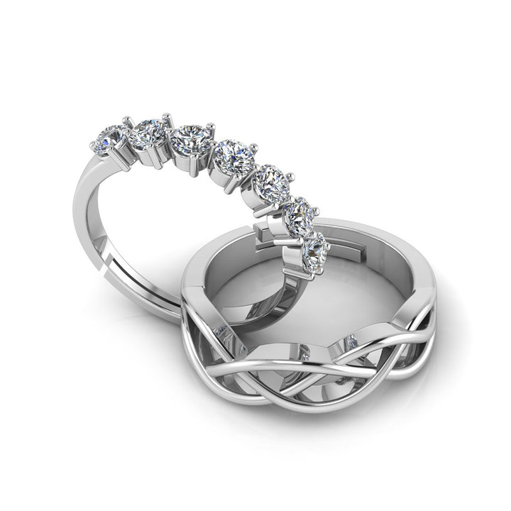 925 Sterling Silver Diamond Studded Minimal and Celtic Knot Couple's Ring