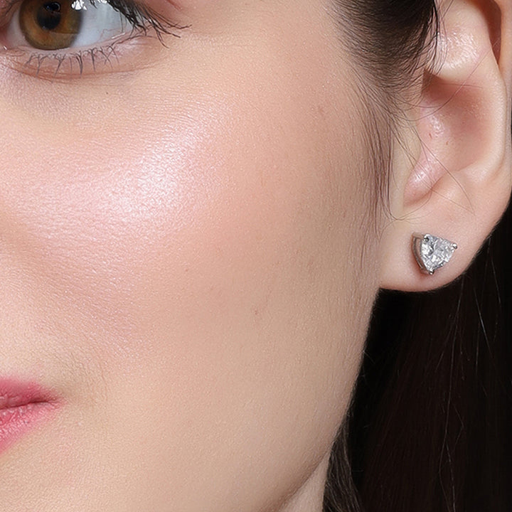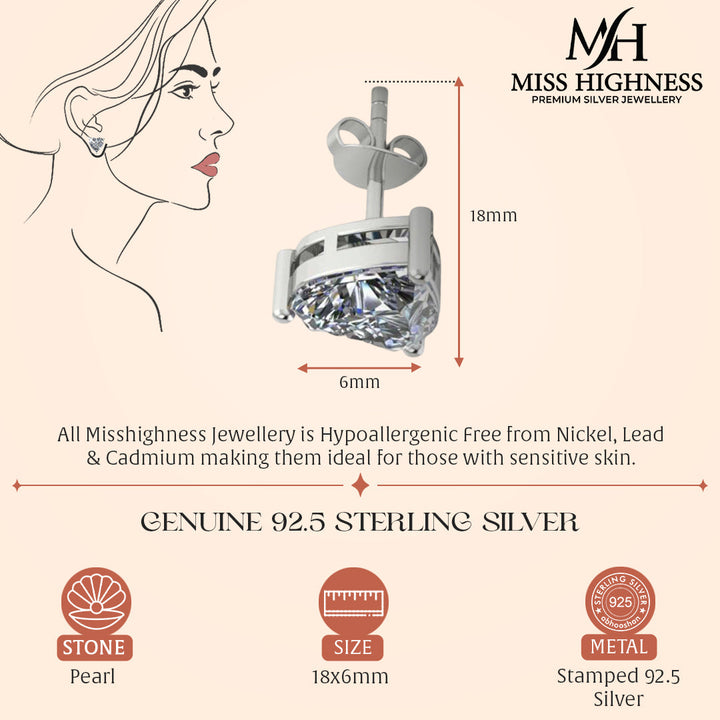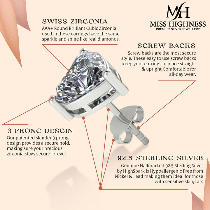 925 Sterling Silver Heart Shape Diamond Stud Earrings for Women and Girls