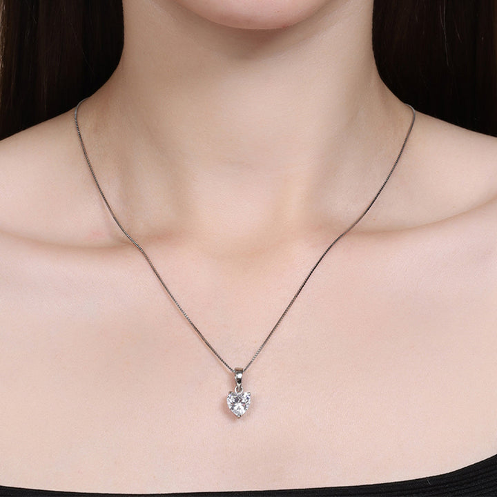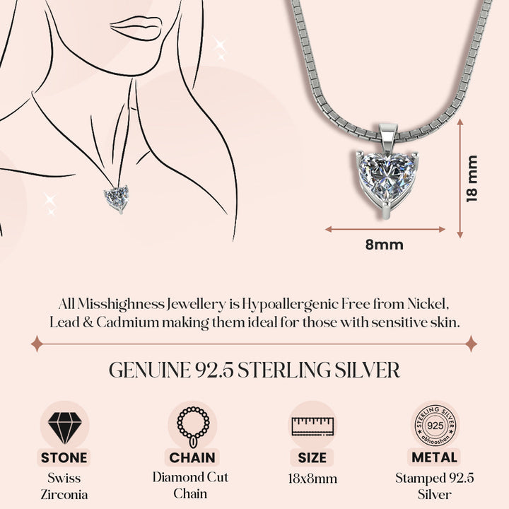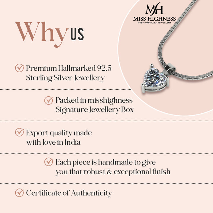 925 Sterling Silver Heart Shape Solitaire Pendant with Pure Silver Link Chain