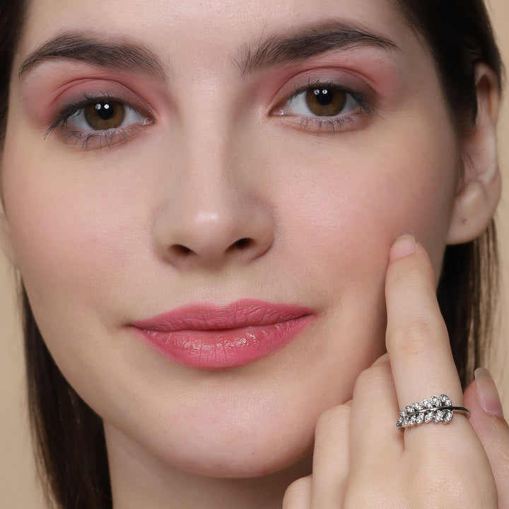Elevate your style quotient with the alluring '925 Sterling Silver Leaf Shape Zircon Studded Free size Ring'. Crafted with precision, this beautiful ring features a leaf shaped setting adorned with dazzling zircon gemstones. Crafted from high quality sterling silver, it is a perfect fit for most finger sizes. Versatile and chic, this ring matches with any outfit, adding a touch of glamor to your look. With its timeless beauty, it is the perfect accessory or a thoughtful gift symbolizing nature and enduring beauty.