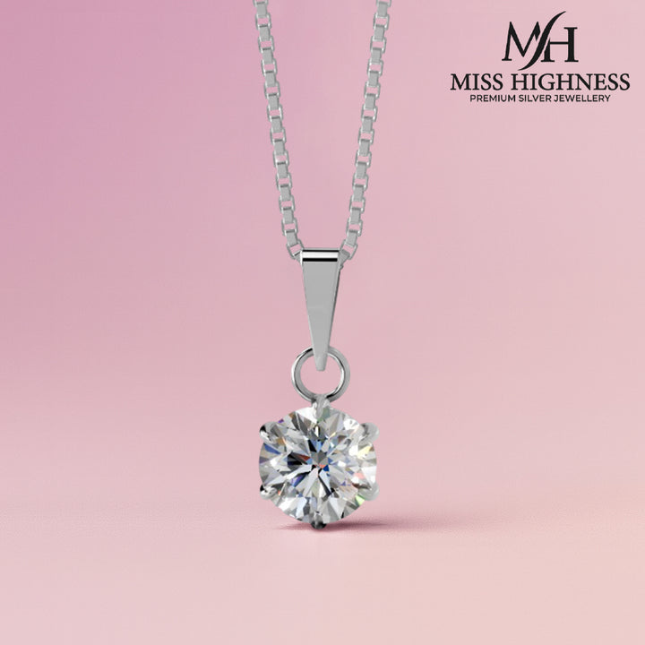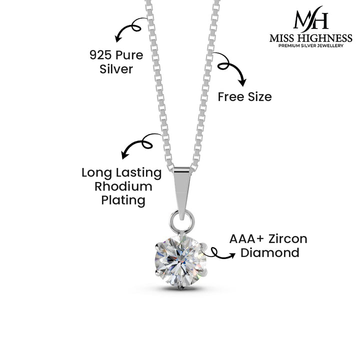 Spill beauty with '925 Sterling Silver Solitaire Diamond Pendant with Link Chain'. This exquisite necklace showcases a dazzling diamond, set in a high quality sterling silver pendant. The sparkle of the diamond is enhanced by its sleek and minimalist design. It hangs beautifully from a delicate link chain, adding a touch of sophistication to any neckline. Crafted with precision and attention to detail, this necklace exudes timeless elegance and grace. Whether worn as a symbol of love, as a special occasion gift, or as an everyday accessory, this solitaire diamond pendant necklace is a stunning piece that commands attention and reflects the wearer's refined taste Is.
