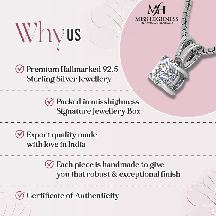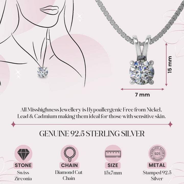 925 Sterling Silver Solitaire pendent with chain