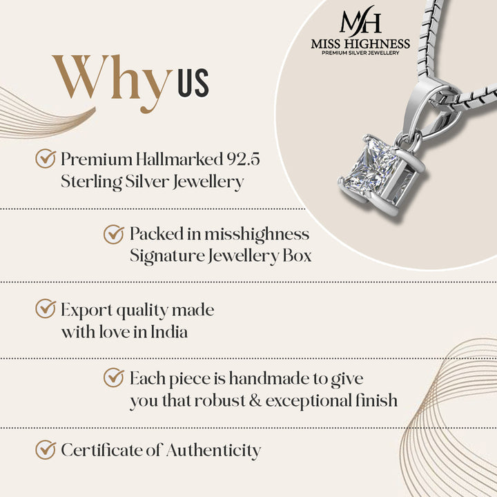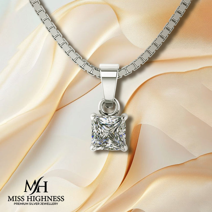 925 Sterling Silver Solitaire Pendant with pure Silver Link Chain