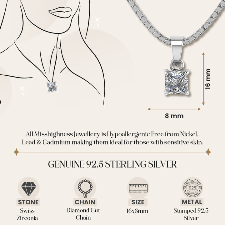 The 925 Sterling Silver Solitaire Pendant with Pure Silver Link Chain is a stylish and versatile piece of jewellery. Made from high quality 925 sterling silver, it boasts of a sleek and polished appearance. The pendant features a dazzling solitaire gemstone that has been expertly cut to enhance its sparkle and securely held in a classic prong setting. The pure silver link chain adds a touch of elegance, providing a timeless look that can be paired with any outfit. This pendant is perfect for both everyday wear and special occasions, making it a must-have accessory in any jewellery collection. Its simple yet sophisticated design ensures that it will never go out of style, and also makes for a thoughtful and adorable gift for your loved ones.