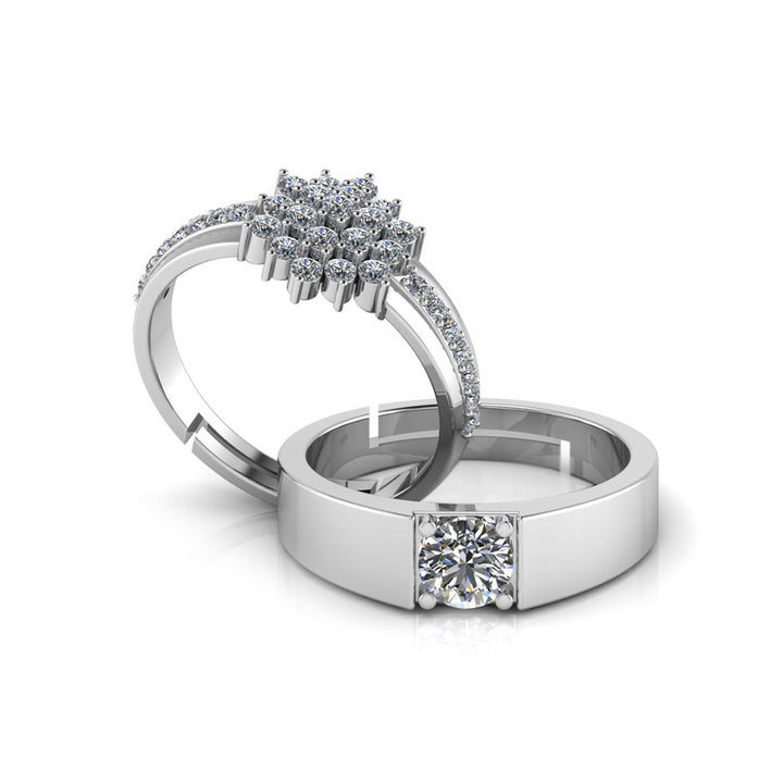 925 Sterling Silver Solitaire Pretty Posy Cocktail Ring For Couple's