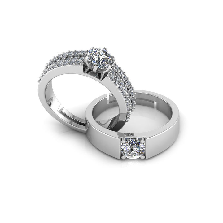 925 Sterling Silver Solitaire Triple Lair Solitaire Ring For Couple's