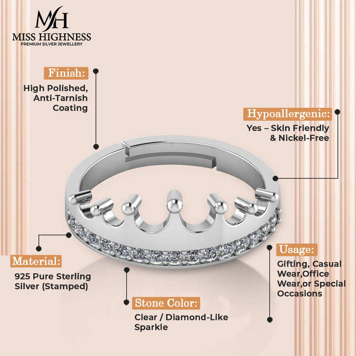 Inspired by royal diadems, this ring is crafted for women who love to stand out while staying effortlessly sophisticated.