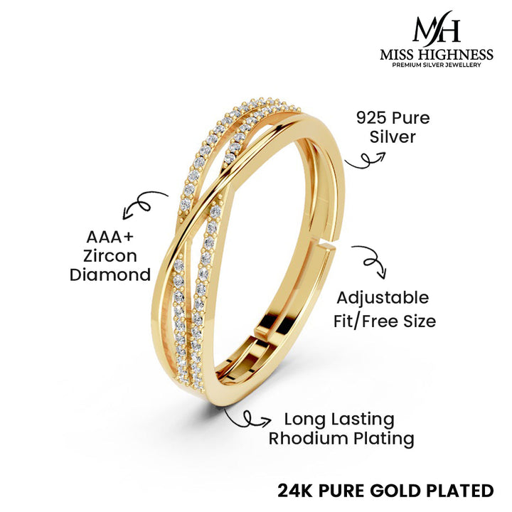 Miss Highness Gold-Plated 925 Silver Crossover CZ Ring for Women | Elegant Triple Band Design