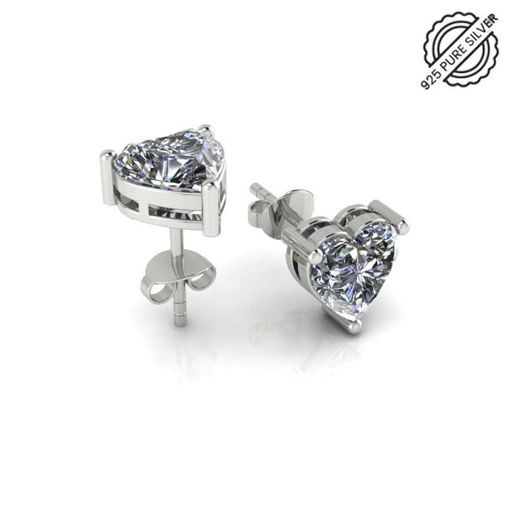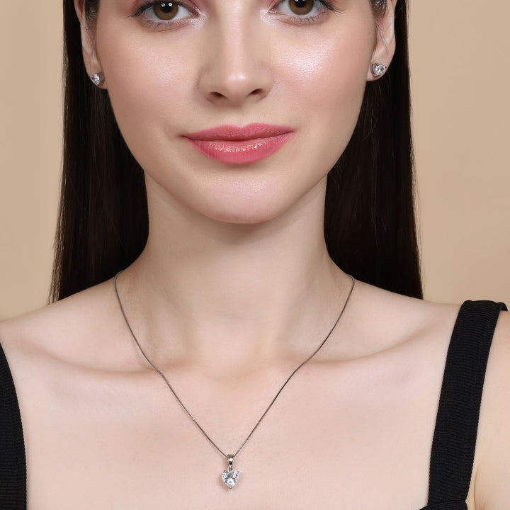 Timeless Beauty: 925 Sterling Silver Heart Shape Solitaire Pendant with Diamond Stud Earrings