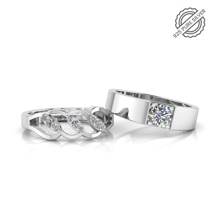 925 Sterling Silver Solitaire and Crystal Designer Zircon Diamond Ring for Couple