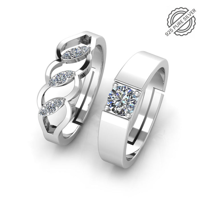 Captivating Elegance: 925 Sterling Silver Solitaire and Crystal Designer Zircon Diamond Ring for Couples