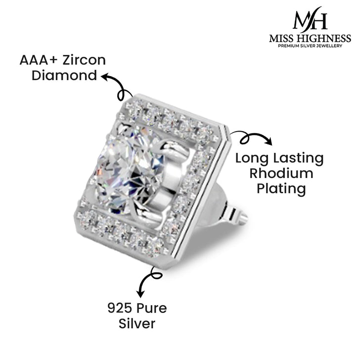 Miss Highness 925 Pure Silver Square Zircon Earrings for Women