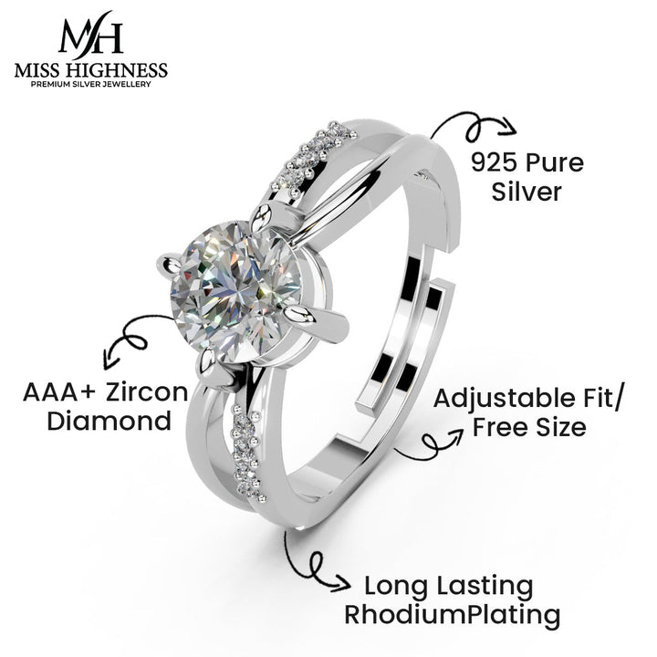 Miss Highness 925 Silver Solitaire Ring with CZ Stone for Women - Best Gift for Wife & Girlfriend