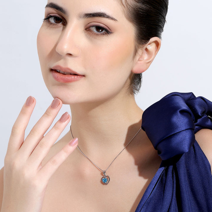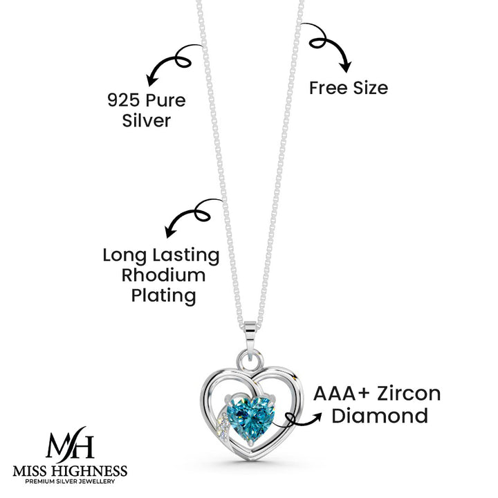 Miss Highness 925 Silver Blue Heart Pendant with Zircon Accents For Women