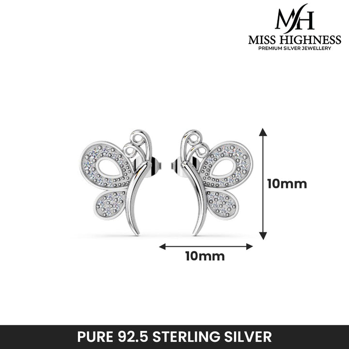Miss Highness 925 Silver Butterfly Stud Earrings with Zircons For Women