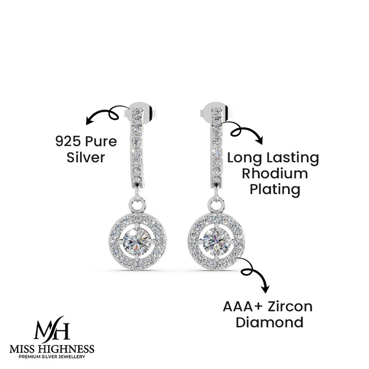 Miss Highness 925 Silver Dangle Earrings with Round Zircon Charm For Women