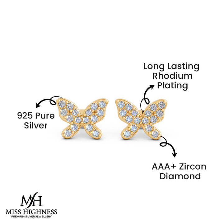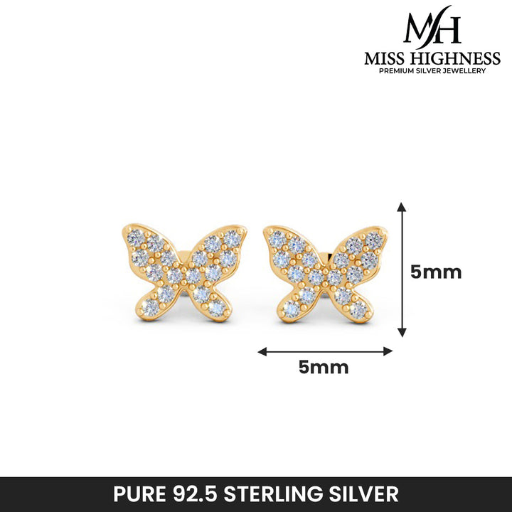 Miss Highness 925 Silver Gold Butterfly Stud Earrings for Women