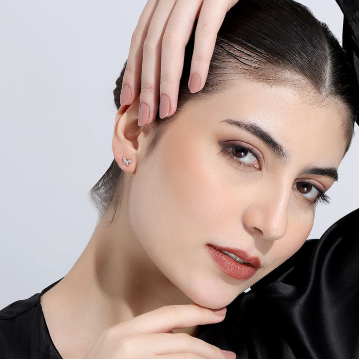 Add a pop of golden sparkle to your day with these Miss Highness Butterfly Stud Earrings, crafted from 92.5 sterling silver and finished in a radiant gold polish. Dotted with shimmering AAA+ zircon stones, the compact butterfly design (just 5mm x 5mm) makes them perfect for everyday wear, especially for girls, teens, or anyone who loves minimalist jewelry with a touch of whimsy.