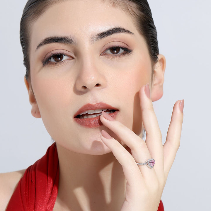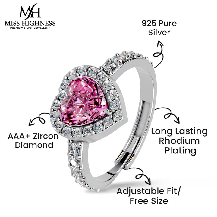 Miss Highness 925 Silver Pink Heart Zircon Ring for Women