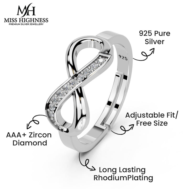 Miss Highness 925 Silver Plated Infinity Design Adjustable Ring for Women