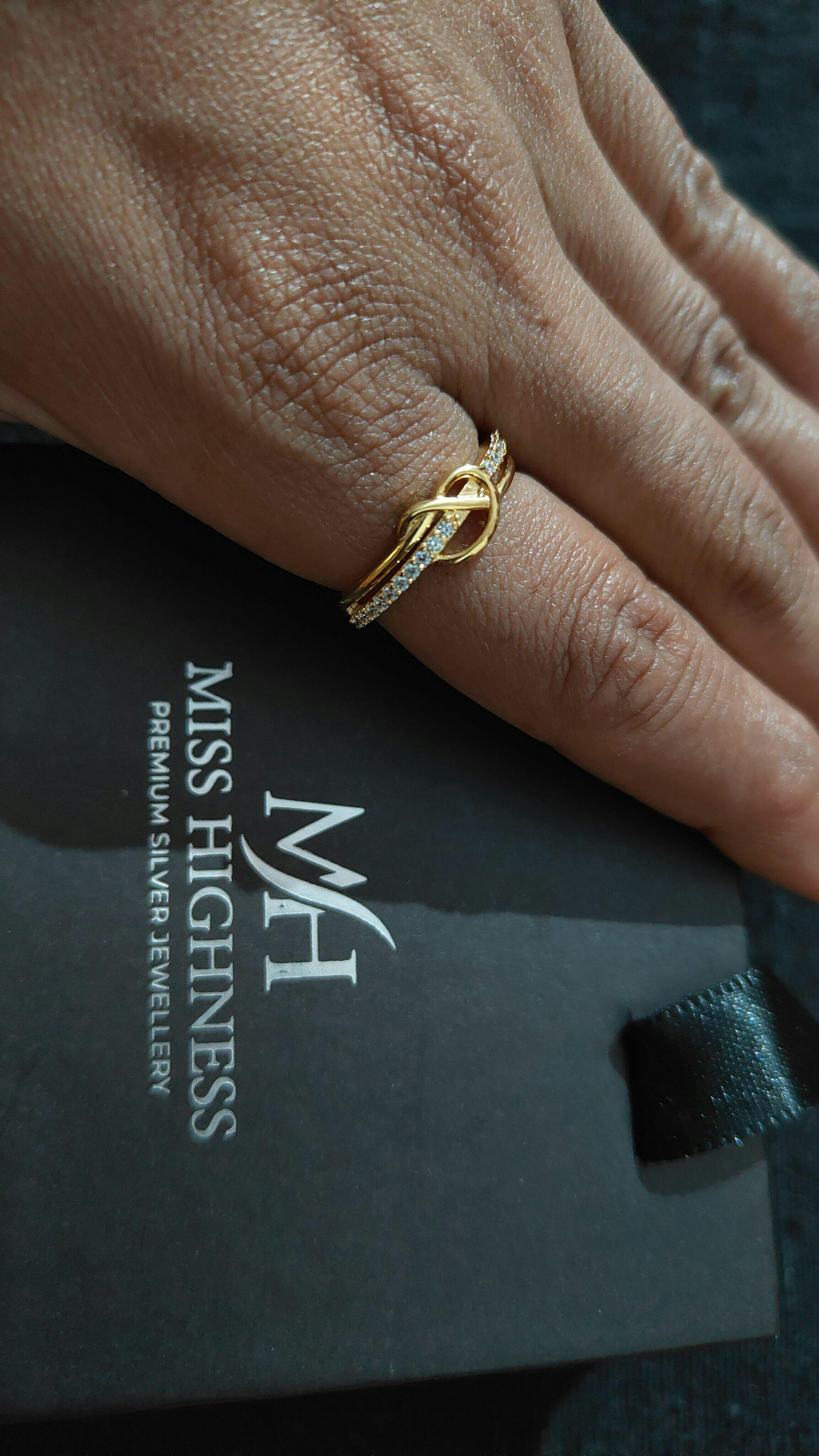 Miss Highness 925 Sterling Silver 24K Gold Plated Knot Design Promise Ring for Women