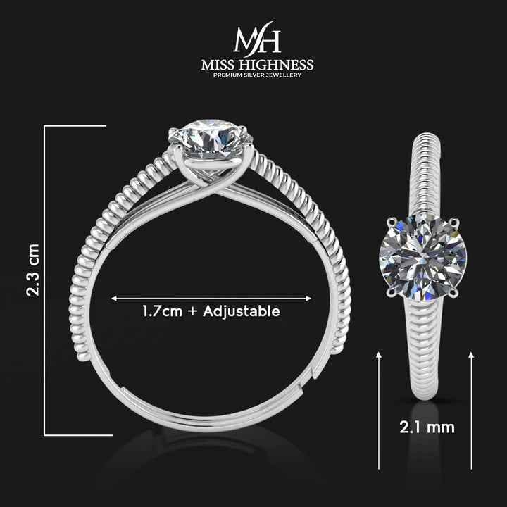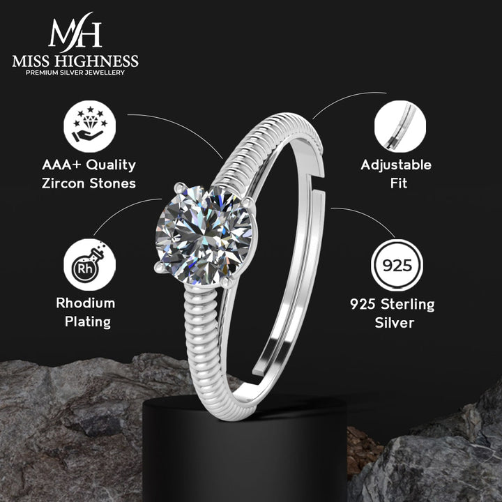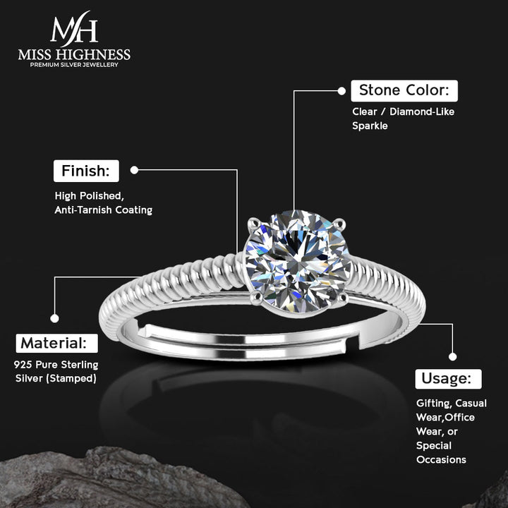 Each ring is crafted from premium 925 sterling silver and coated with rhodium plating for enhanced shine and durability. The adjustable design ensures a perfect fit, making it a versatile and comfortable choice for daily wear.