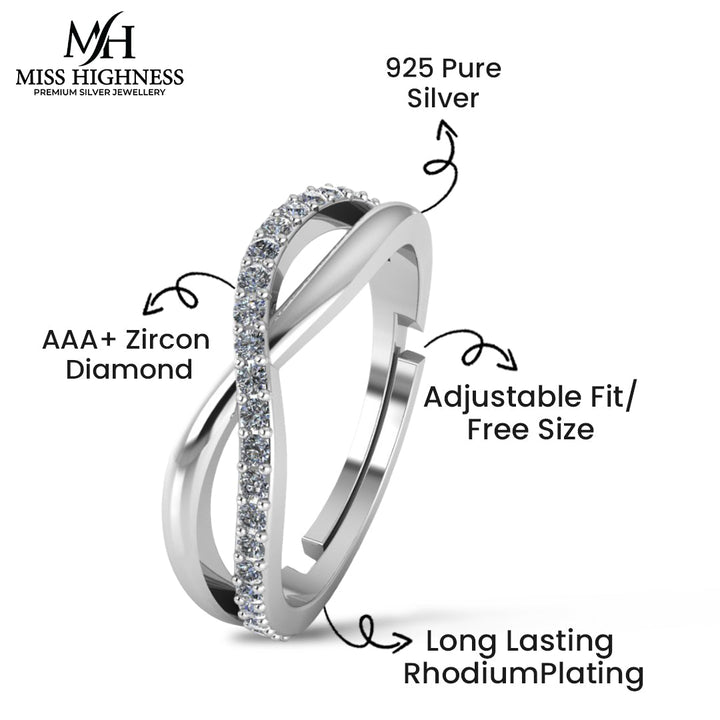 Miss Highness 925 Sterling Silver Adjustable Infinity Ring | Rhodium-Plated CZ Band for Women & Girls