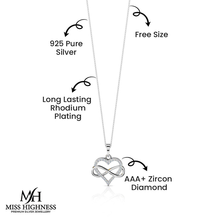 Miss Highness 925 Sterling Silver Heart & Infinity Pendant with Chain for Women